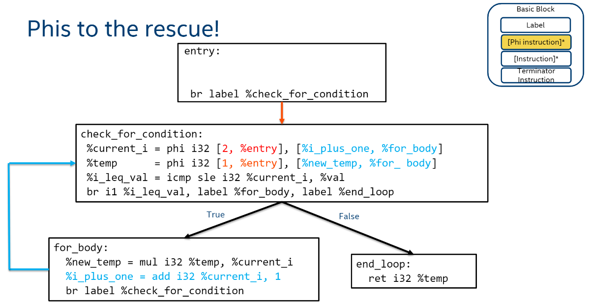 这里简单说一下PHI是啥,首先LLVM的IR是以SSA(Static Single Assignment,静态一次性赋值)形式存在,即每个变量只能被赋值一次。但在有分支和循环的程序中,同一个变量可能在不同路径上被赋予不同的值,所以PHI就是为了解决这种问题,引用Q神的解释就是类似三元运算符。